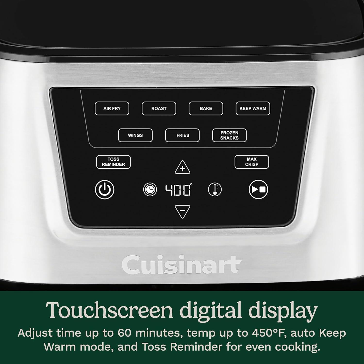 Cuisinart Air Fryer, Large 6-Quart Basket with 4 Cooking Functions to Air Fry, Bake, Roast, and Keep Warm, 3 Presets, PFAS-Free, Dishwasher-Safe Parts, AIR-180, Black & Stainless Steel