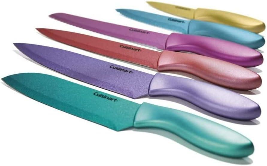 Cuisinart Classic Color Cutlery offers a distinctive combination of exceptional craftsmanship and precision performance. Designed with lustrous finishes and vibrant colors, these knives are a skillful fusion of form and function, and each comes with its own matching blade guard.