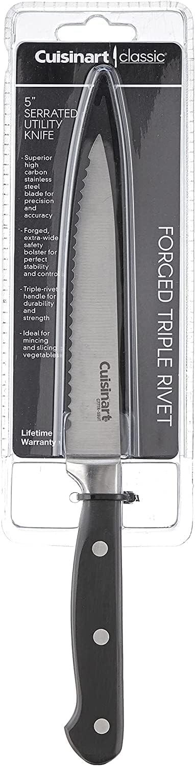 Cuisinart classic forged triple rivet cutlery possesses superior high-carbon stainless steel blades for precision and accuracy. Packaged in a 15-Piece block and open stock, these extraordinary knives have tapered ground blades that narrow gradually to an extremely sharp, fine edge. Constructed for perfect stability and control, the knives are designed with an extra-wide forged safety bolster and stainless steel rivets securing the blade to the comfortable handle.