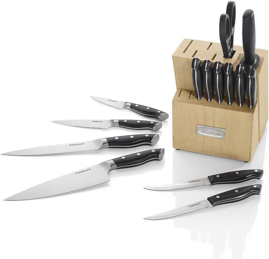 This Cuisinart Classic 15pc Block Set was created with nitrogen-infused stainless steel to maintain its ultra-sharp cutting edge longer and precision-tapered ground blades that narrow gradually to an extremely sharp, fine edge for precise cutting. This chef-caliber set includes a hand-picked selection of essential kitchen knives, shears and a sharpening steel, along with a wood block for easy and convenient storage.
